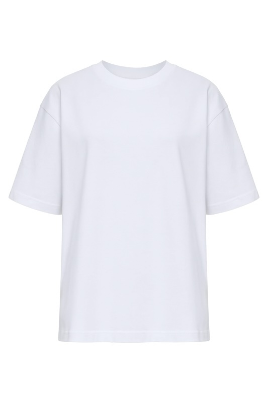Оверсайз футболка из премиального хлопка “пенье компакт” (плотная кулирная гладь) — мягкая, приятная к телу и устойчивая к износу. Эластичная горловина сохраняет форму и аккуратный вид даже после множества стирок.